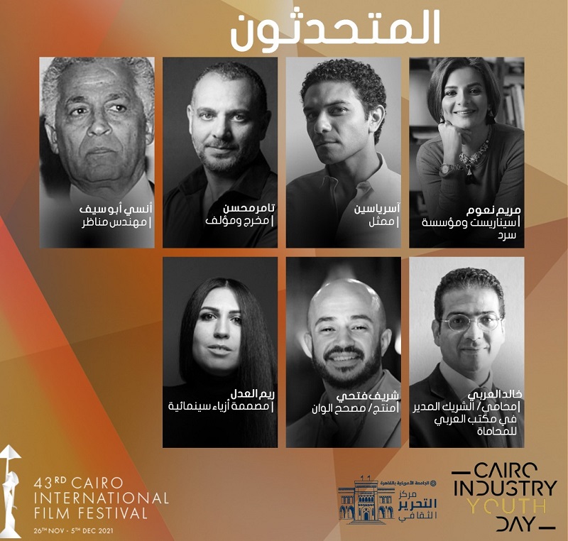 الخبراء الذين يشاركون في يوم صناعة السينما للشباب، هم مهندس المناظر أُنسي أبو سيف، والمخرج والمؤلف تامر محسن، والممثل آسر ياسين، والكاتبة مريم نعوم، ومصممة الأزياء ريم العدل، والمنتج ومصحح الألوان شريف فتحي، والمحامي خالد العربي، الخبير في الشؤون القانونية بالمجال السينمائي.