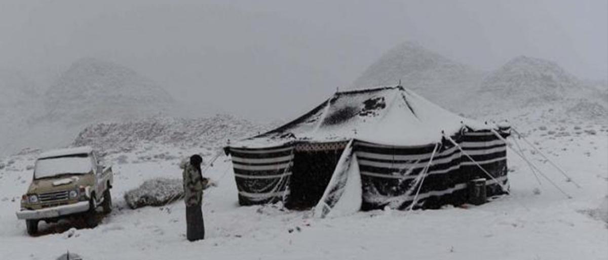لحظات نادرة.. الثلوج تغطي مناطق صحراوية في السعودية