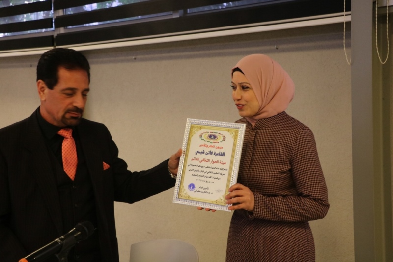 وفي ختام الحفل قدّم الأمين العام لهيئة الحوار الثقافي الدائم الدكتور عبدالكريم البعلبكي دروع تكريمية إلى الشاعرة فاتن شيمي، الدكتور ظافر الخطيب، والمخرج محمد الشولي، كما قدّم رئيس المركز الحضاري للحوار المهندس السيد سمير الحسيني درعاً تكريمياً إلى الشاعرة فاتن شيمي، وكرّم منتدى شاعر الميناء الشعبي الشاعرة فاتن شيمي بتقدم درع لها.