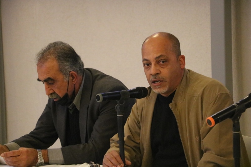 وتحدث منسّق سهرة النورس الثقافية الكاتب ظافر الخطيب مرحباً بالحضور وقال: السلام على فلسطين، السلام على القدس بر الأبرار، السلام على نابلس جبل النار، السلام على جنين وما أدراكم ما جنين، السلام على الشهداء الذين يحضر طيفهم بيننا ليزيد عنادنا، طيفهم يبقى حاضراً حتى يتأكد وعدنا وانتصارنا.