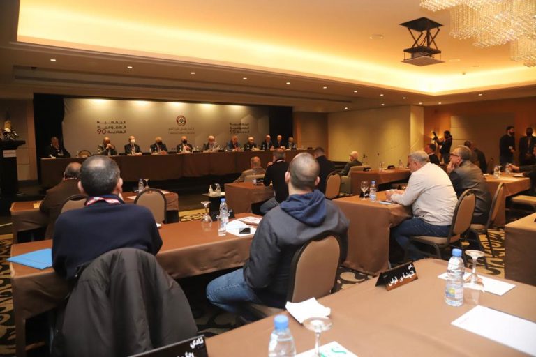 عُقدت الجمعية العمومية الـ90 للاتحاد اللبناني لكرة القدم عصر اليوم في فندق موفنبيك بنصاب مكتمل مع حضور 47 نادياً من أصل 50 تتألّف منهم الجمعية العمومية، الى جانب أعضاء اللجنة التنفيذية للاتحاد برئاسة السيد هاشم حيدر، وحضور الامين العام جهاد الشحف وعدد منالوسائل الاعلامية.