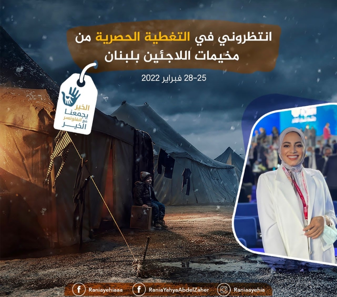 وضمن هذه الفعالية ستقوم رانيا يحيى بزيارة لبنان من تاريخ 25 حتى 28 الجاري ستقوم خلال هذه الأيام بزيارة لمخيمات اللاجئين السوريين في لبنان وتنسيق حملة بعنوان “الخير يجمعنا مع انفلوانسر الخير”، أهدافها عديدة وهي: