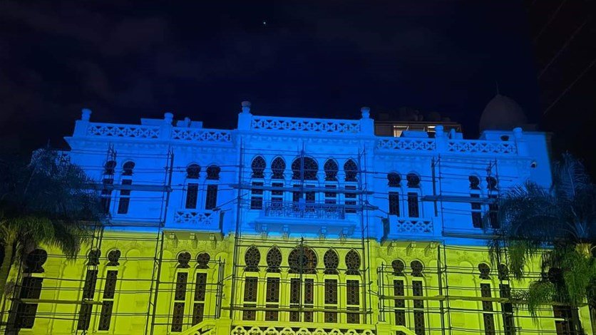 ألوان العلم الأوكراني تضيئ مبنى متحف سرسق