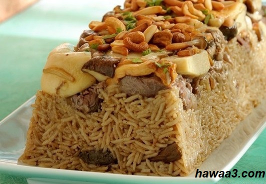 ثم بعد ذلك نقوم بوضع الأرز بالبهارات والحمص على اللحم، ونقوم بزيادته بمرقة الدجاج أو مرقة اللحم وننتظر من 45 دقيقة إلى 60 دقيقة حتي يتم طهي الأرز جيدا.