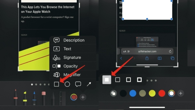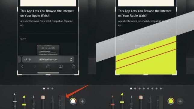 كما تستطيع استخدام أداة القلم في أداة لقطات الشاشة لترسم بعض الأشكال الهندسية في الصور أو تحديد قسم منها.