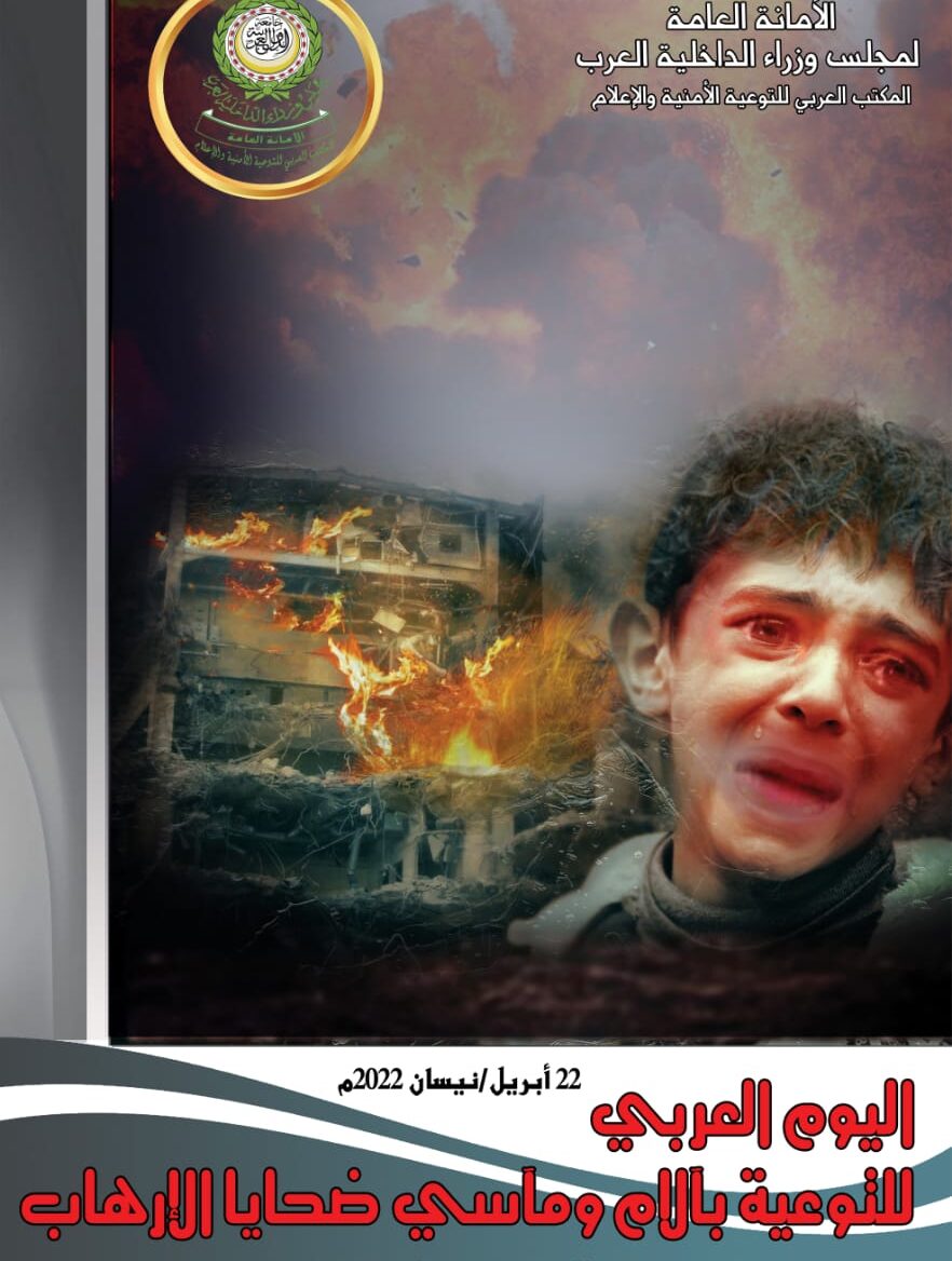 يعد الثاني والعشرين من شهر أبريل في كل عـام مناسبة متجددة تشارك فيها الأمانة العـامة لمجلس وزراء الداخلية العرب باليوم العربي للتذكير بآلام ومآسِي ضحايا الأعمال الإرهابية؛ وهو ذات التاريخ الذي اعتُمدت فيه الاتفاقية العربية لمكافحة الإرهاب من قبل مجلسي وزراء الداخلية والعدل العرب في اجتماعهما المشترك عام 1998م، من أجل التضامن مع ضحايا الإرهاب والتوعية بحقوقهم والمساهمة في حمايتها واحترامها ودعم احتياجاتهم من خلال تطوير وتنمية قدرات الدول الأعضاء ومنظمات المجتمع المدني على تلبية احتياجات هذه الفئة المهمة بكفاءة وفاعلية.