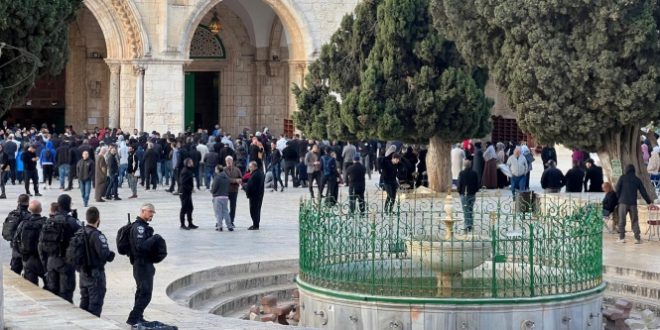 وانتشر عناصر التدخل السريع والوحدات الخاصة في ساحات الحرم، وقامت بإبعاد الفلسطينيين عن مسار اقتحامات المستوطنين وجولاتهم الاستفزازية في ساحات الحرم.