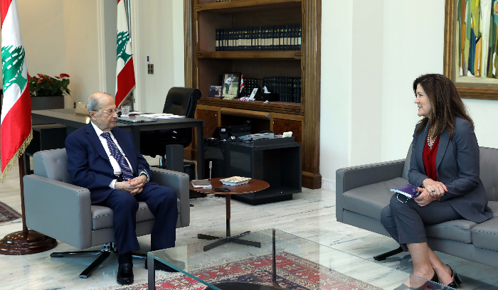 استقبل رئيس الجمهورية العماد ميشال عون قبل ظهر اليوم في قصر بعبدا، السفيرة الاميركية دوروثي شيا في حضور نائب رئيس مجلس النواب الياس بو صعب، وعرض معها للعلاقات اللبنانية – الأميركية وسبل تطويرها في المجالات كافة. وتم التطرق الى موضوع المفاوضات غير المباشرة لترسيم الحدود البحرية الجنوبية ومهمة الوسيط الأميركي السفير آموس هوكشتاين.