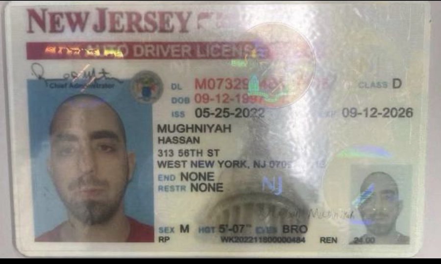 وعثر مع المشتبه به مطر على رخصة قيادة مزورة باسم “حسن مغنية” صادرة عن ولاية نيوجيرسي أيضاً.