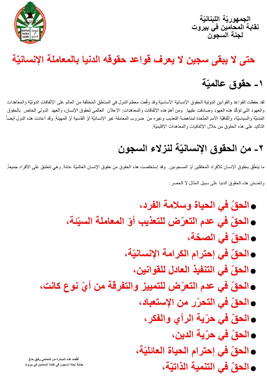 المحامي رفيق حاج ينسحب من لجنة حقوق الانسان- السجين
