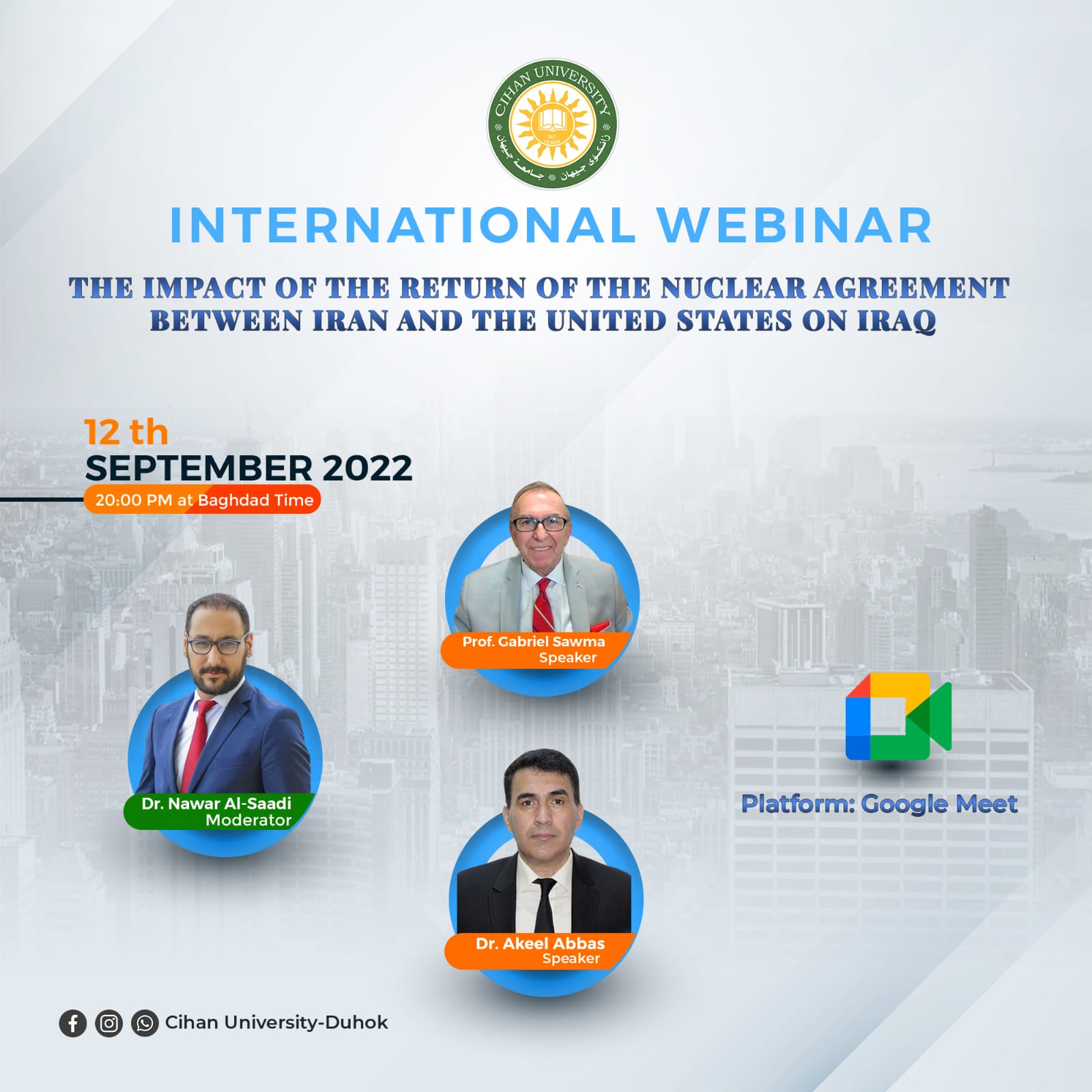 اقام مركز الابحاث في جامعة جيهان – دهوك ويبنار اون لاين بعنوان ” تأثير عودة الاتفاق النووي بين أيران والولايات المتحدة الأمريكية على مستقبل العراق”