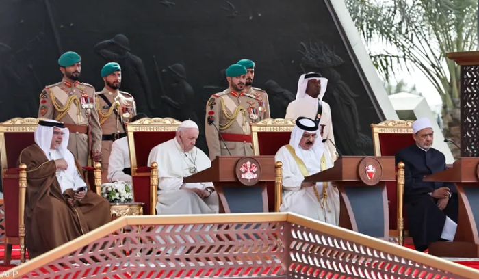 رعى ملك البحرين حمد بن عيسى آل خليفة، في حضور قداسة البابا فرنسيس، شيخ الازهر الإمام الأكبر الدكتور أحمد الطيب، ولي العهد رئيس مجلس الوزراء الأمير سلمان بن حمد آل خليفة، الحفل الختامي لملتقى البحرين للحوار “الشرق والغرب من أجل التعايش الإنساني” في دورته الأولى والذي أقيم في ميدان صرح الشهيد هذا اليوم، في حضور المشاركين، بحسب وكالة انباء البحرين الرسمية .