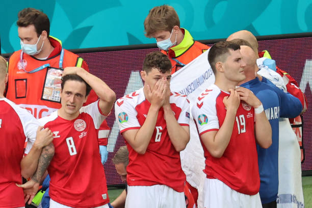 توقفت المباراة بين الدنمارك وفنلندا فجأة بعد سقوط اللاعب كريستيان إريكسن مغشياً عليه في مباراة المنتخبين في الدور الاول لبطولة كأس أوروبا لكرة القدم اليوم السبت قبل أن يوقفها الحكم ويطلب تأجيلها.